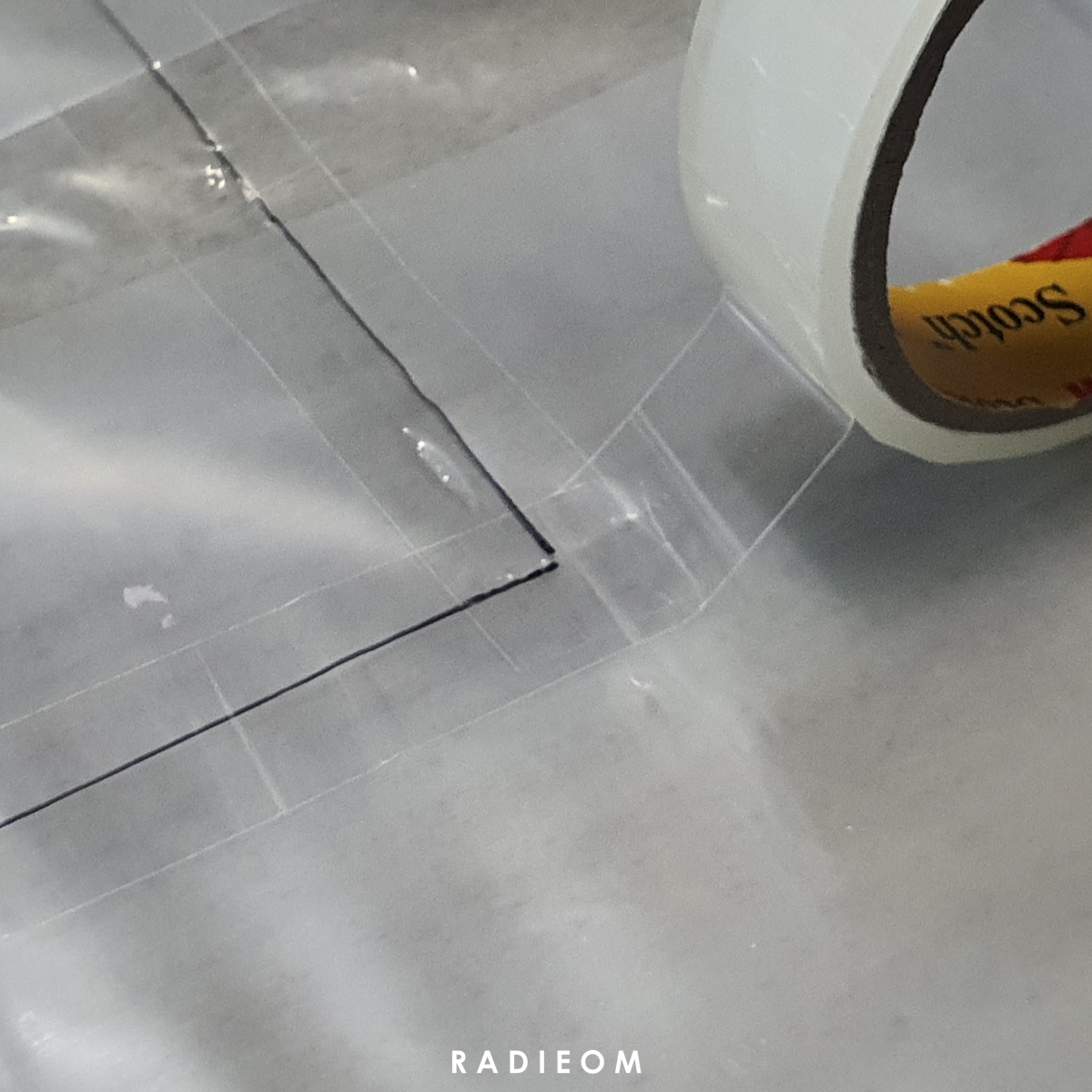 그냥 잘라버리면 힘이 없을 것 같아서 잘라낼 부분을 가운데에 두고 테이프를 두 겹으로 발라서 보완해 주고 선에 맞춰서 가위로 잘라줍니다.