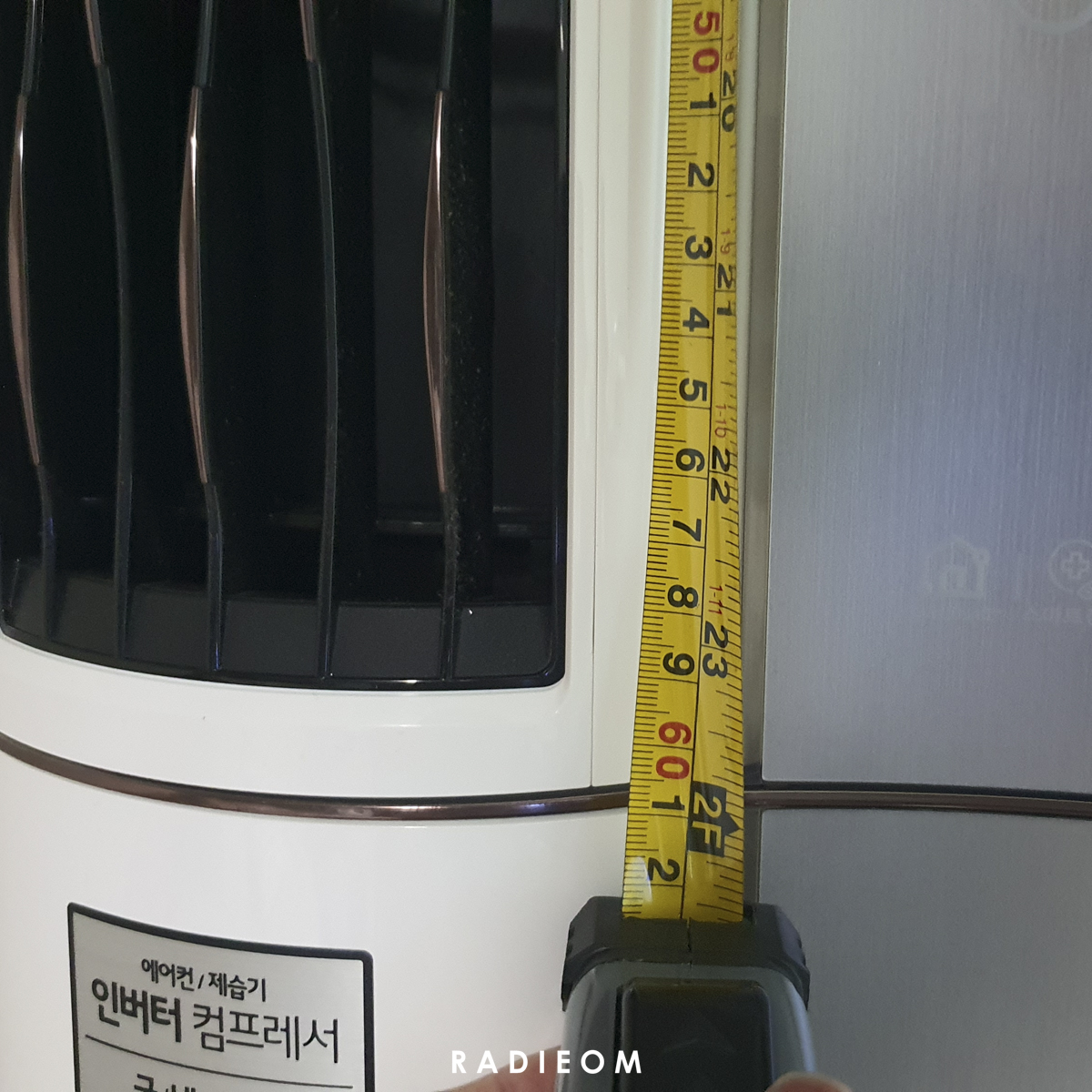 LG 스탠드에어컨 송풍구는 세로로 길쭉하게 2개가 있고, 거실도 시원해야 하기 때문에 한쪽만 에어컨 비닐 터널로 막을 거예요. 길이를 측정해보니 송풍구 외곽으로 비닐터널이 부착될 가로, 세로 1cm 정도 여분을 두고 세로 62cm, 가로 14cm 였답니다 (송풍구를 막으면 안 되므로 부착될 면적 고려해서 바깥쪽에 붙도록 넉넉히 잘라주세요... 저는 두 번 잘랐답니다😭😭)