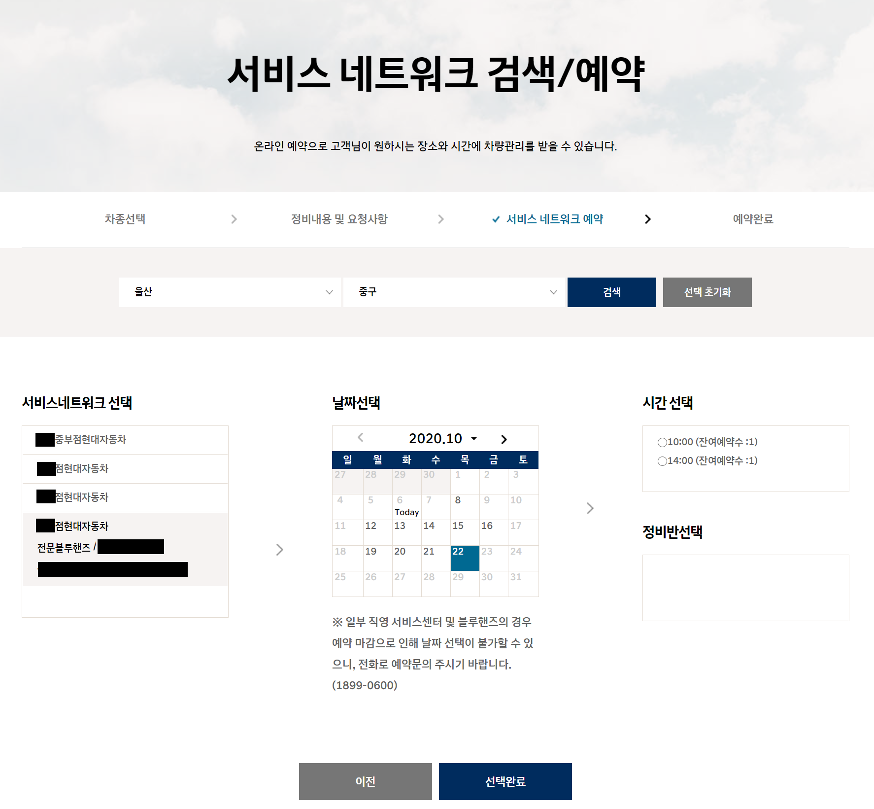 그리고 해당 지점에 여유가 있어야 예약 가능해요