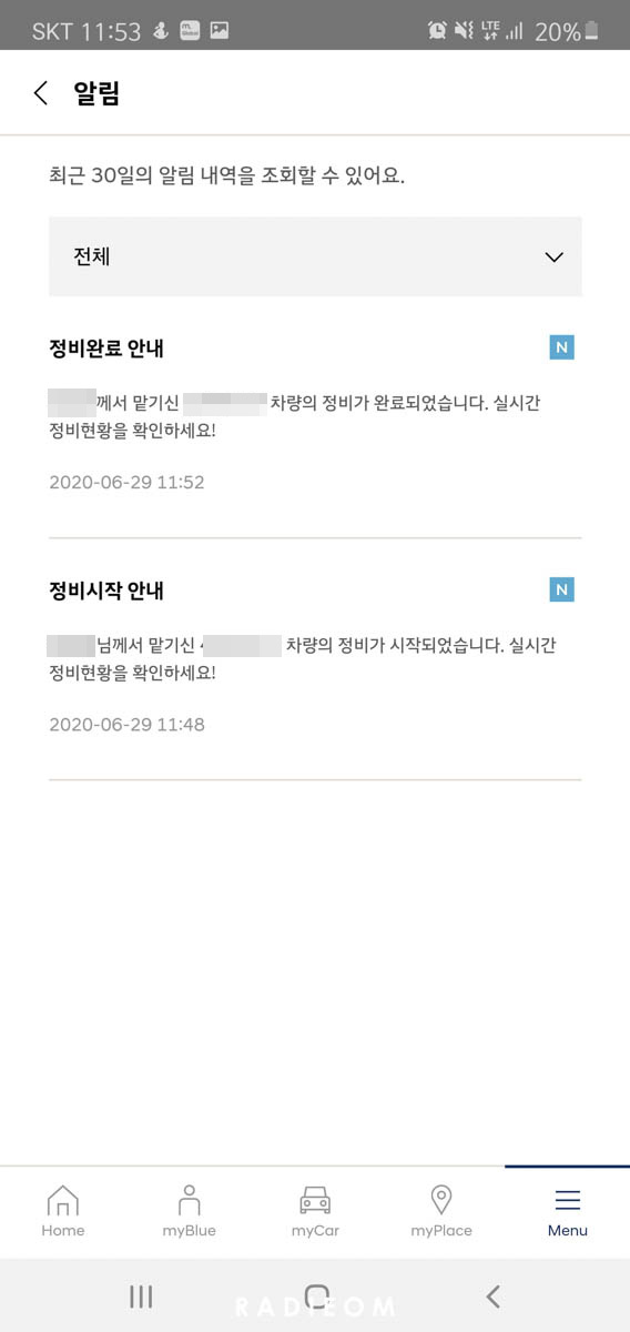 (정비 종료 후 담당자께서 전화 오는게 더 빠르지만요)